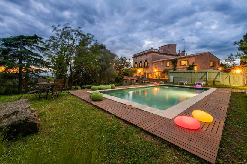 Casa La Daina has a beautiful garden with sweeping views over the forested valley to the Garrotxa mountains and the Pyrenees in the far distance. There are plenty of spots to sit and enjoy the peace and birdsong. Sunsets are spectacular!