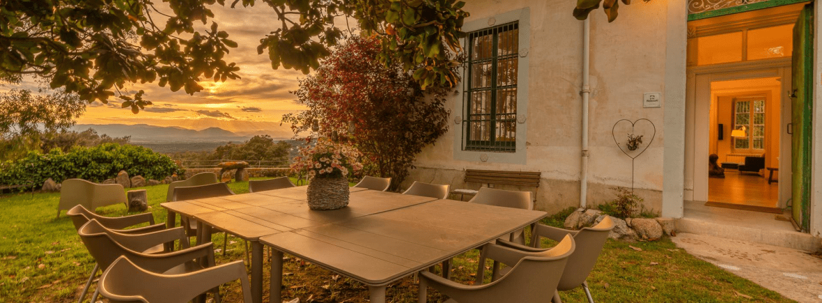 Casa La Daina has a beautiful garden with sweeping views over the forested valley to the Garrotxa mountains and the Pyrenees in the far distance. There are plenty of spots to sit and enjoy the peace and birdsong. Sunsets are spectacular!